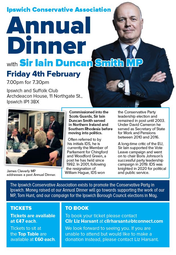 We are delighted to announce that Bernard Jenkin, Member of Parliament for Harwich and North Essex since 2010, will be speaking at our Annuall Fundraising Dinner on Friday, 4th February, to be held at Ipswich and Suffolk Club, Archdeacon House, 11 Northgate St.,Ipswich IP1 3BX