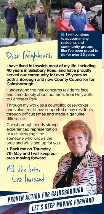 VOTE FOR LIZ HARSANT IN GAINSBOROUGH DIVISION (SCC) and WARD (IBC)