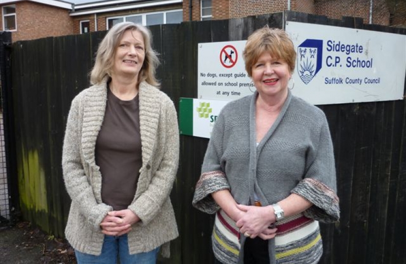 Picture shows Cllr Judy Terry (right) and local Rushmere activist, Pam Kelly, outside Sidegate Lane County Primary School